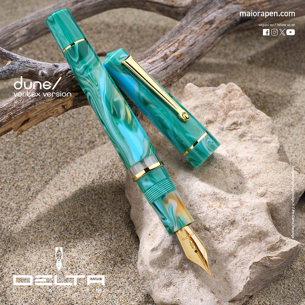 The Delta Duna is a high-quality Italian piston-filler fountain pen with a full-sized body turned from solid rods of Italian resin.