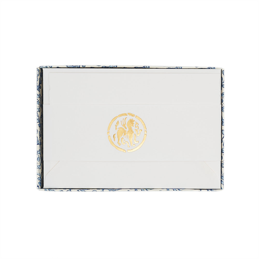 Each set includes 10 folded deckled edged cards and 10 matching envelopes packaged in decorative, Florentine boxes. Cards and envelopes are fountain-pen-friendly.