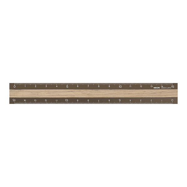 Midori Aluminum and Wood Ruler 15 cm - Brown x Dark Brown