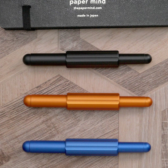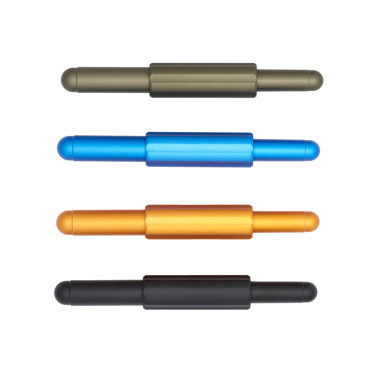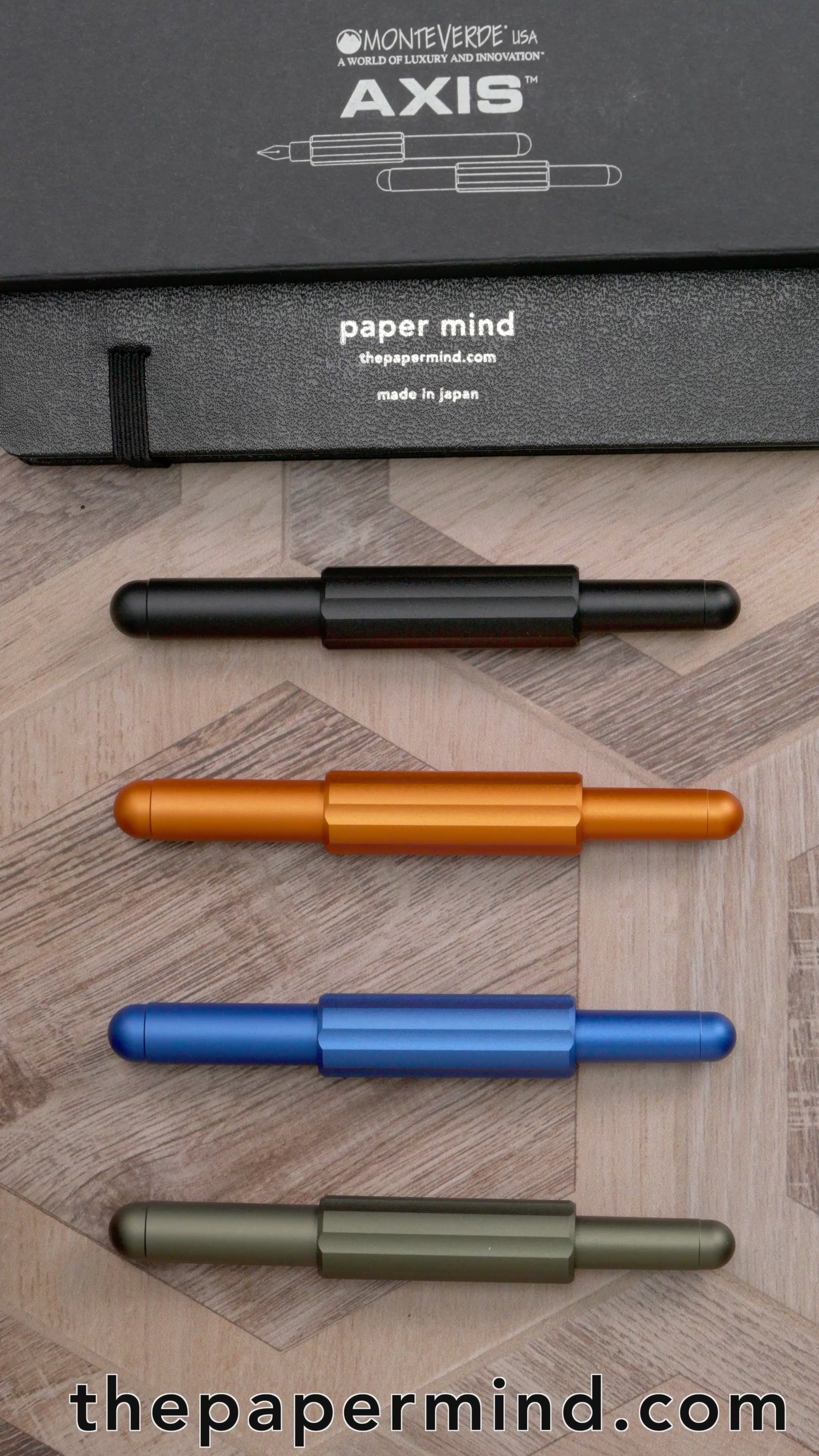 This anodized aluminum pocket pen provides a unique haptic experience with its gear shaped grip and magnetic capping system that provides an audible "shhhunnnk" sound when capping and posting this pen. When posed, the Axis becomes a full-sized pen with a large grip section.