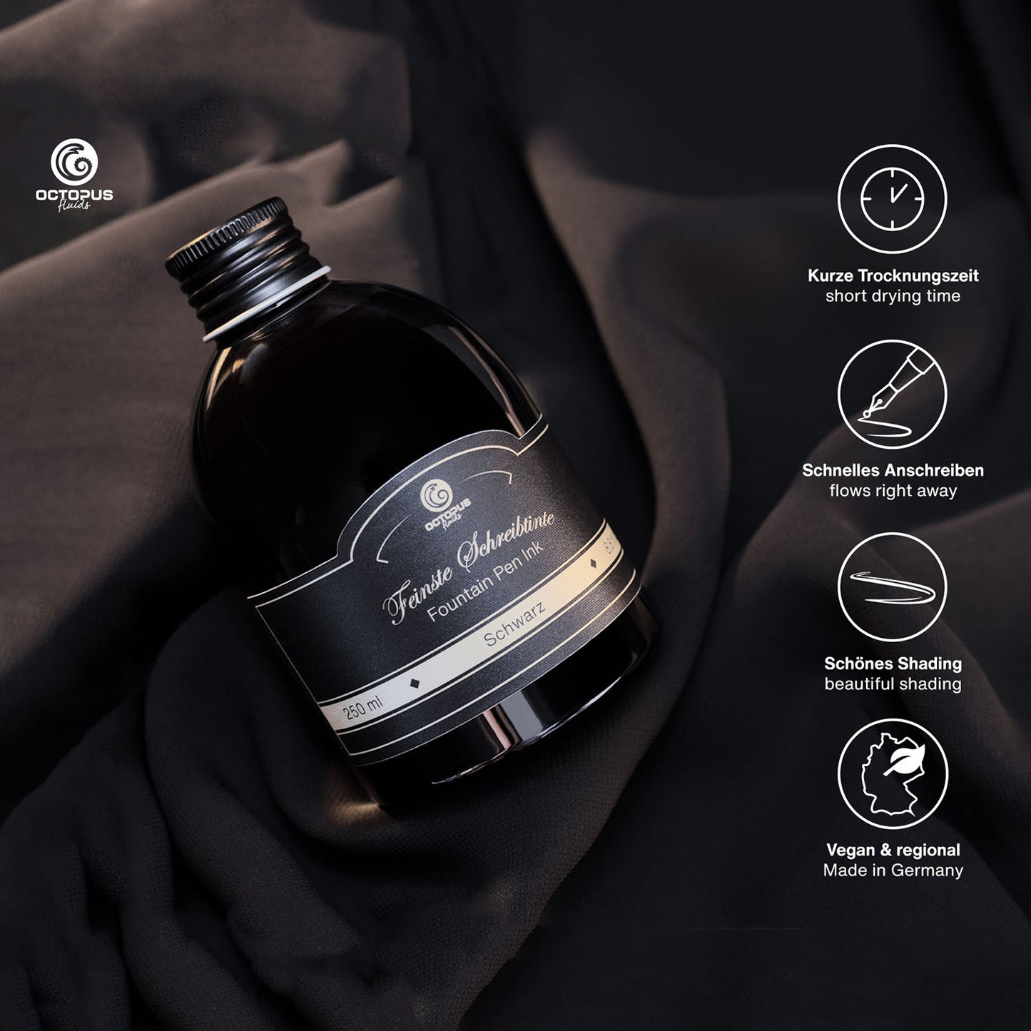 Octopus Fluids Fountain Pen Ink - 250 ml Bottle - Schwarz Black