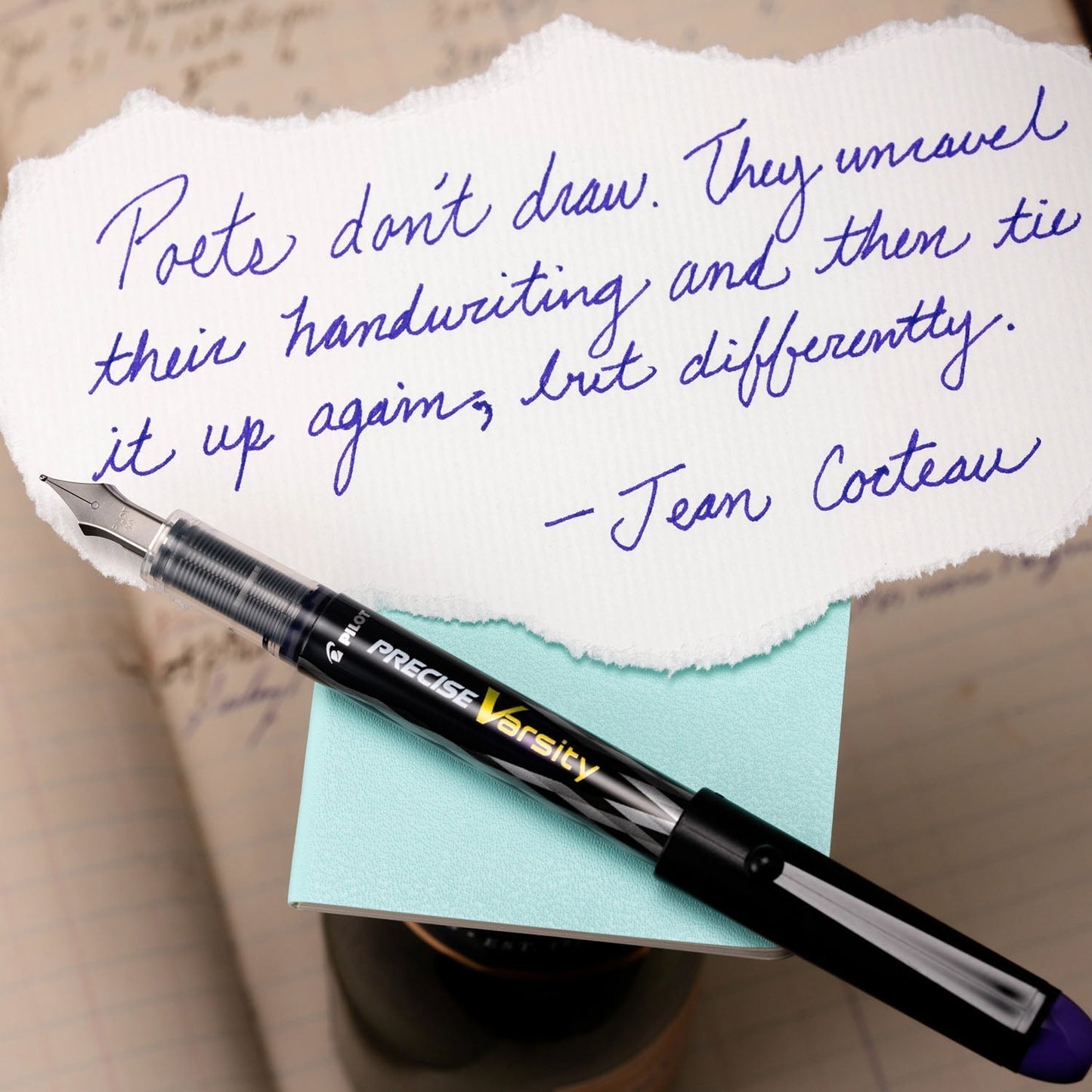 The Pilot Varsity offers the exceptionally smooth writing experience of a fountain pen in an affordable disposable pen. The high-quality steel nib and advanced liquid ink feed system provide reliable maintenance-free performance